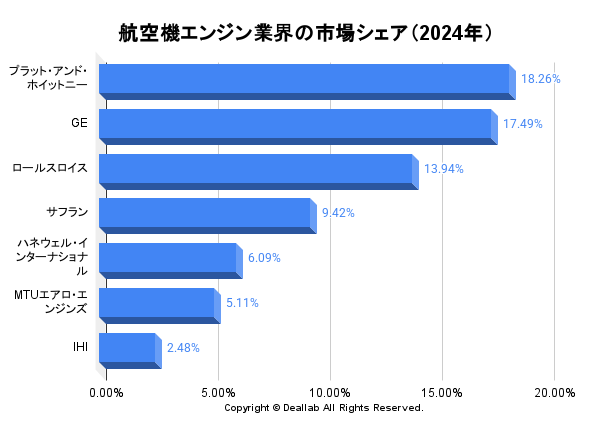 | 1位 | Pratt&Whitney | プラット・アンド・ホイットニー | 18.26% |