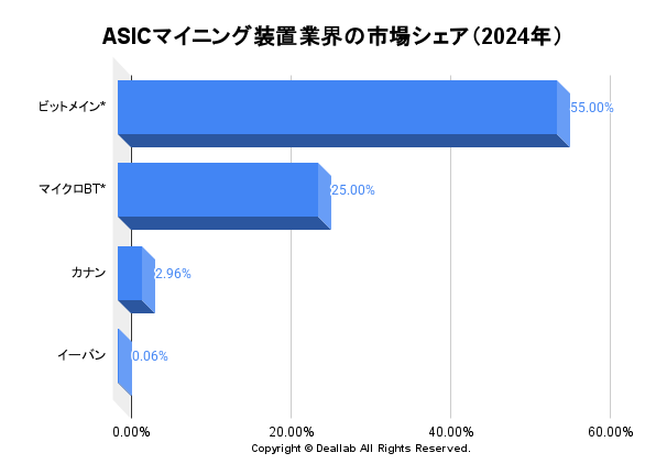 ※ASICマイニング装置業界の市場シェア(2024年)