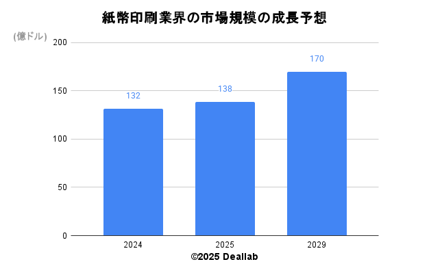 紙幣印刷業界の市場規模の予想成長推移 ©2025 Deallab