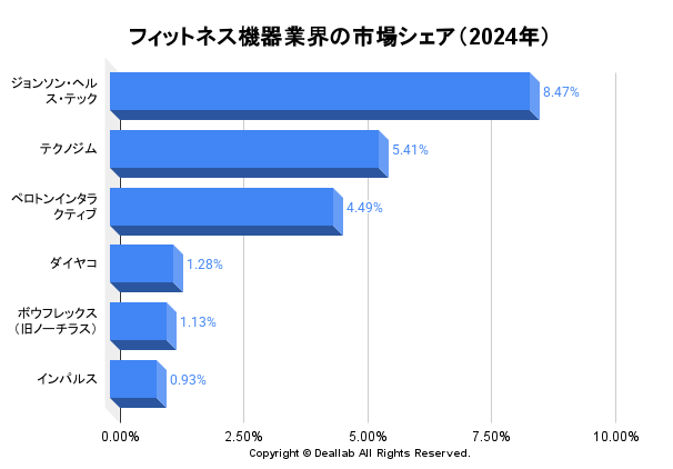 ※フィットネス機器業界の市場シェア(2024年)