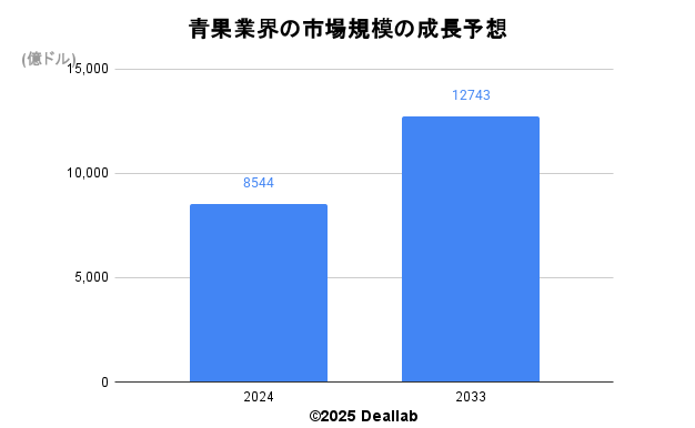 当データベースでは、2024年の青果業界の市場規模を8,544億ドルとしております。参照した各種調査データは次の通りとなります。