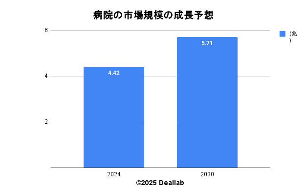 当データベースでは、2024年の病院業界の市場規模を4兆4,200億ドルとしております。参照した各種調査データは次の通りとなります。