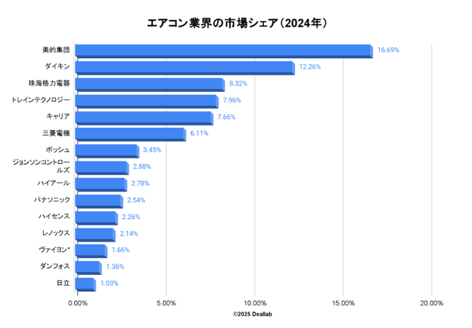 空調機・エアコン業界の市場シェア(2024年) ©2025 Deallab
