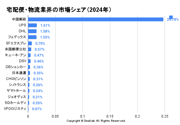宅配運輸・郵便会社の世界市場シェアと業界ランキング(2024年)