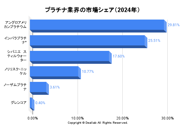 | 1位 | Anglo American Platinum | アングロアメリカンプラチウム | 29.81% |