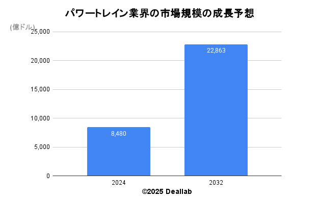 調査会社のマキシマイズ・マーケット・リサーチによると、2024年のパワートレイン業界の市場規模8,480億ドルです。2025年から2032年にかけて年平均13.2%で成長し、同年には22,863億ドルに達すると見込んでいます。