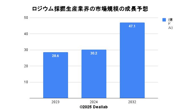 当データベースでは、2024年のロジウム採掘生産業界の市場規模を691千オンスとしております。参照した各種調査データは次の通りとなります。