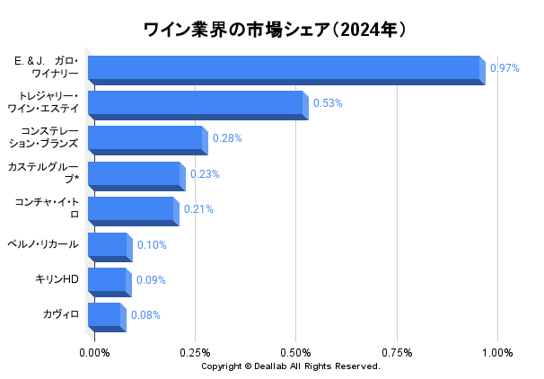 | 1位 | E. & J. Gallo Winery | E. & J. ガロ・ワイナリー | 0.97% |